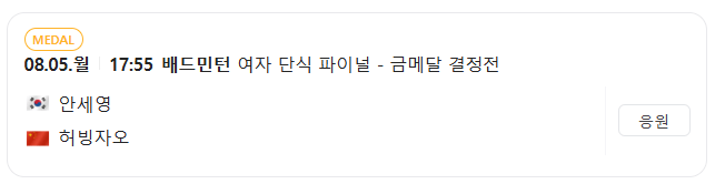 2024년 파리올림픽 배드민턴 여자 단식 결승전 경기 일정