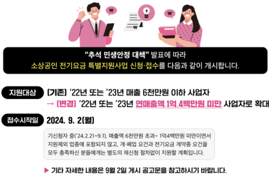 정부에서는 전기 요금 인상과 여름철 전기사용량 급증으로 인해 어려움을 겪는 소상공인들을 위한 특별지원금을 지급하는 방안을 발표했습니다. 신청방법, 신천조건, 신청기간등을 상세히 알려드리겠습니다.