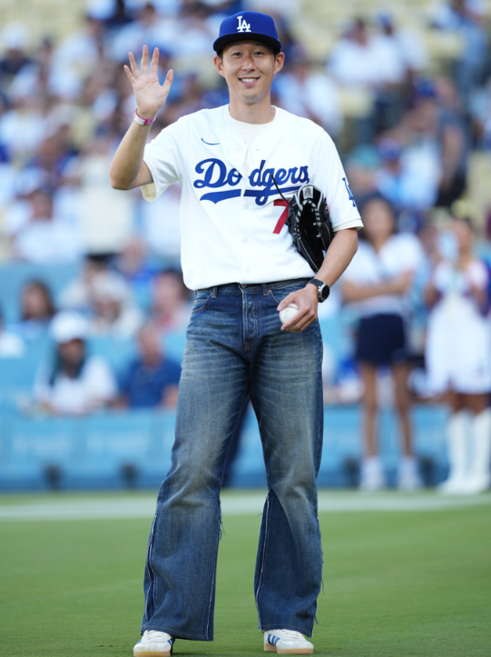 바로 LA 다저스타디움에서 열린 LA 다저스와 신시내티 레즈 경기에서, 한국 축구 스타 손흥민(토트넘·LAFC 소속)이 시구자로 등장한 것입니다.