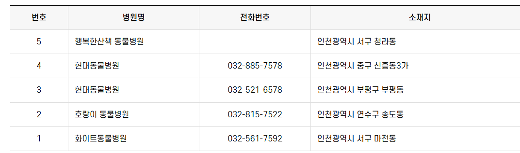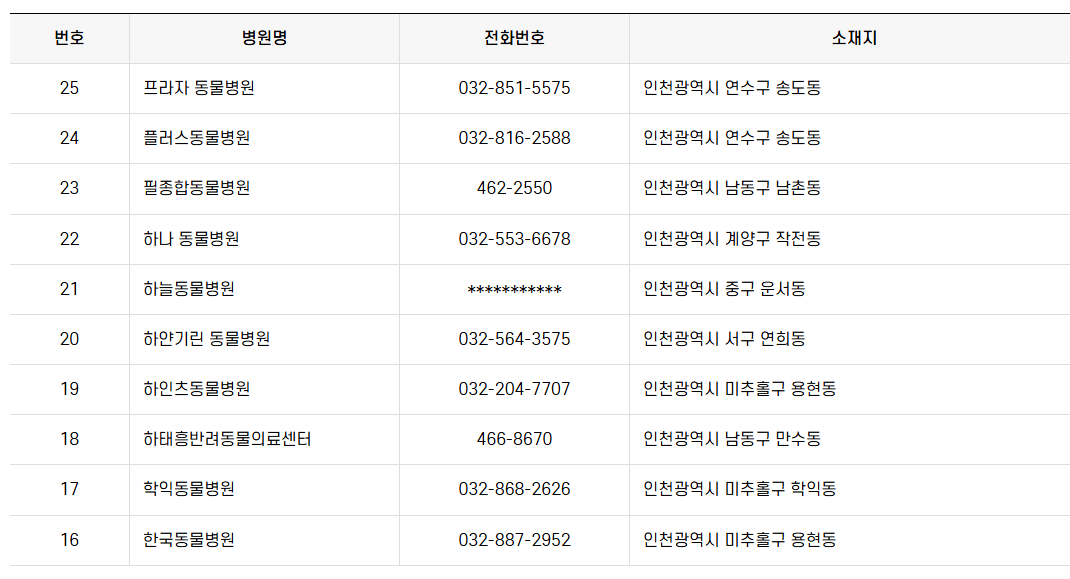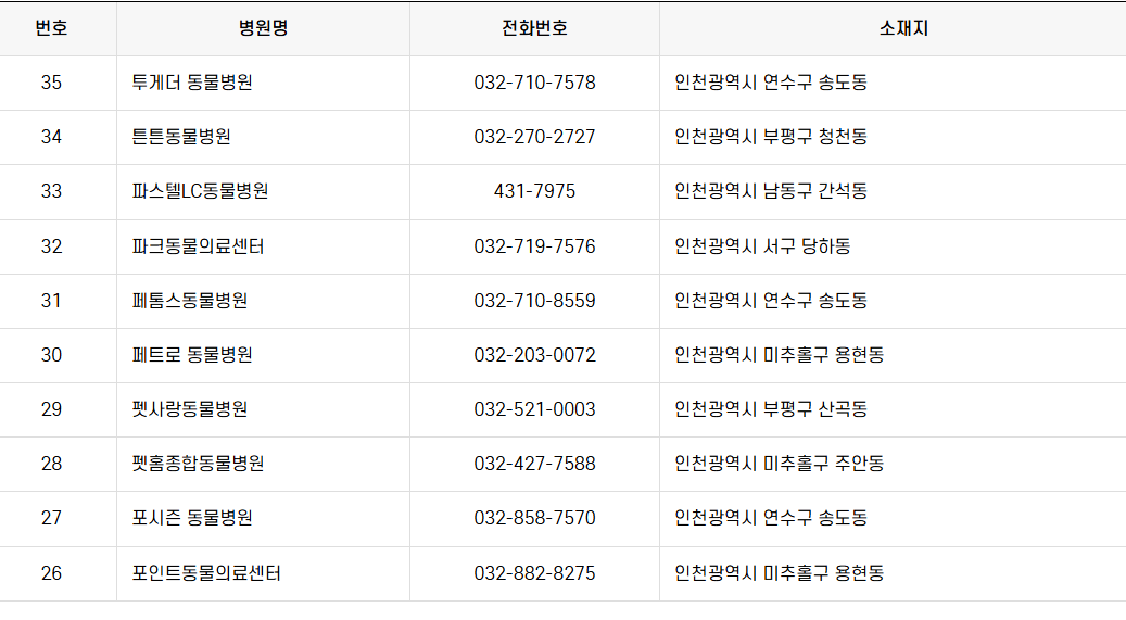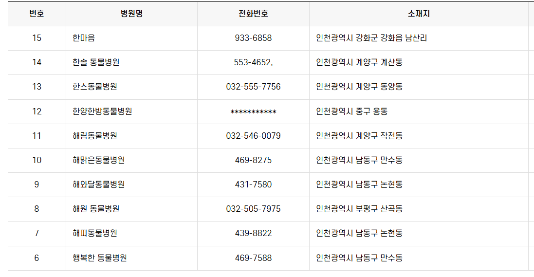 인천, 내 주변 동물병원 상세 리스트