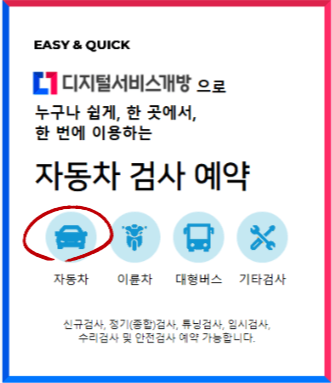 메인 화면에서 자동차 검사예약 중 원하는 차종을 클릭합니다.
