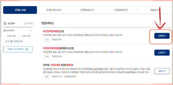 3. 주민등록증재발급 신청하기 버튼을 클릭합니다.