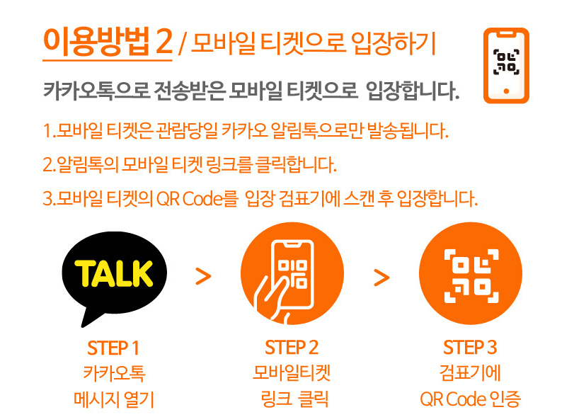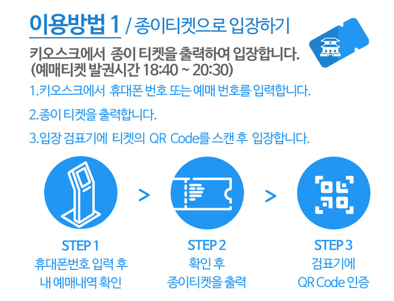 ▶ 온라인 예매 후 관람 당일 광화문 매표소 무인발권기에서 티켓수령 또는 모바일 티켓으로 입장가능