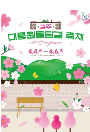 경주 대릉원 돌담길 축제는 벚꽃 개화 시기에 맞춰 열리는 봄 축제로, 아름다운 벚꽃과 다양한 공연, 체험, 먹거리를 즐길 수 있습니다. . 축제 기간 동안 대릉원 구간은 교통이 통제되어 안전하게 즐길 수 있으며, 주요 프로그램으로는 벚꽃 라이트쇼, 돌담길 레스토랑, 친환경 게임과 굿즈를 받을 수 있는 뽑아봄, 아이와 함께 즐길 수 있는 도로 위 놀이터 등이 있습니다.