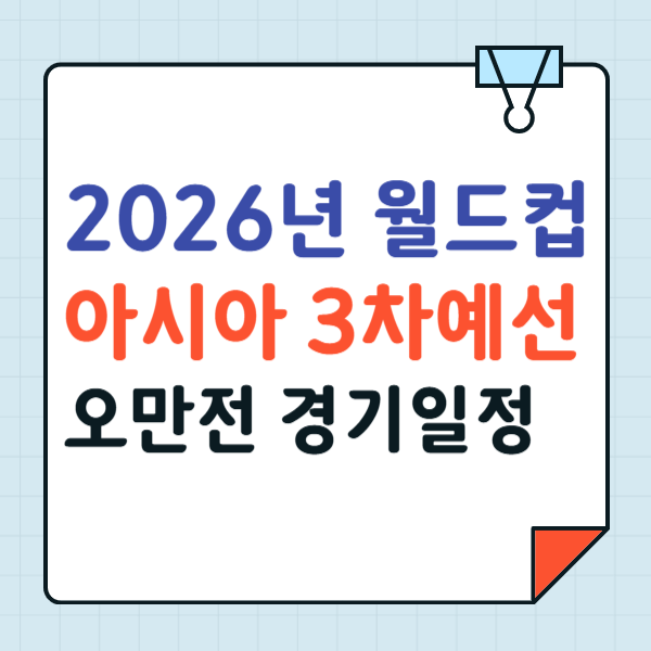 2026년 FIFA 월드컵 아시아 지역 3차 예선에서 대한민국 축구 대표팀이 오만과의 중요한 경기를 앞두고 있습니다. 이번 경기는 월드컵 본선 진출을 위한 핵심적인 승부처로, 많은 축구 팬들의 관심이 집중되고 있습니다. 대한민국은 4승 2무로 승점 14점으로 B조 1위를 기록하고 있습니다. 오만전 경기에서도 승점을 올릴것을 기대하고 이번 글에서는 2026년 월드컵 아시아 3차예선 오만전 경기일정 대표팀 명단등에 대해 자세히 알아보겠습니다.